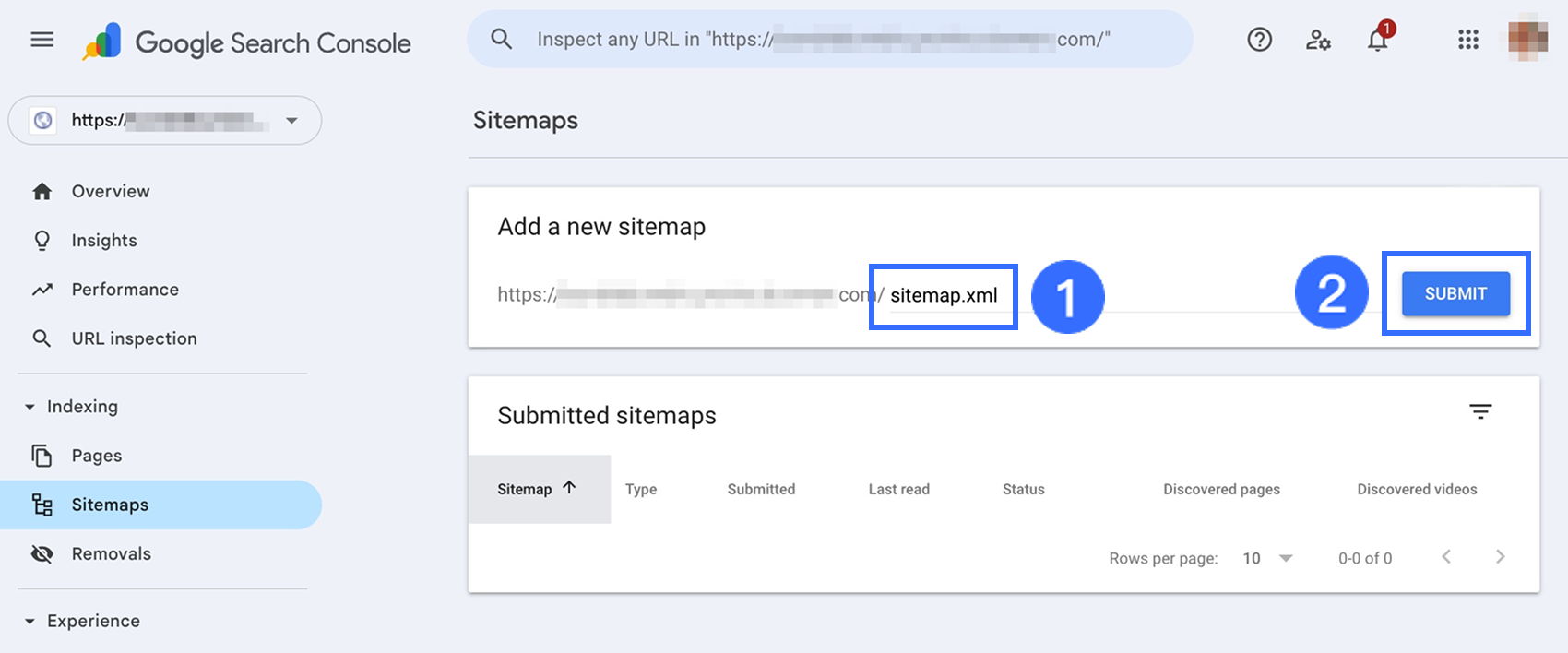 Trong Google Search Console, chọn trang web của bạn từ menu thả xuống ở góc trên bên trái và đi đến phần Sitemaps.