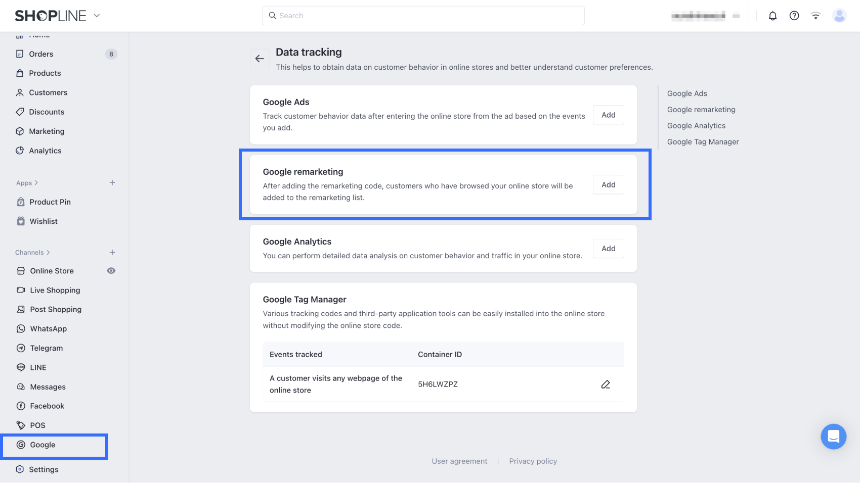 Liên kết Thẻ Tiếp thị lại Google Ads với SHOPLINE