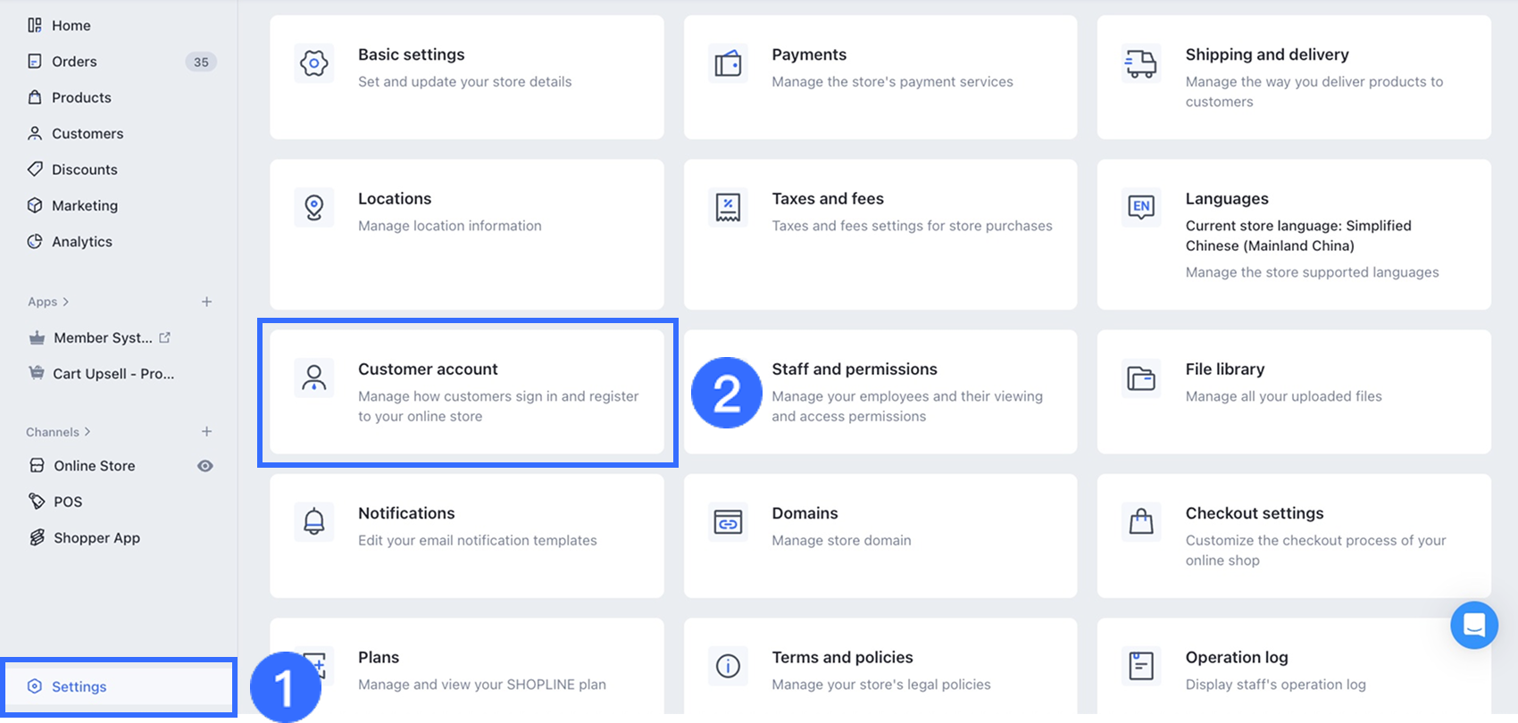 - Trong bảng điều khiển quản trị SHOPLINE của bạn, đi đến Cài đặt > Tài khoản khách hàng > Cài đặt chung.