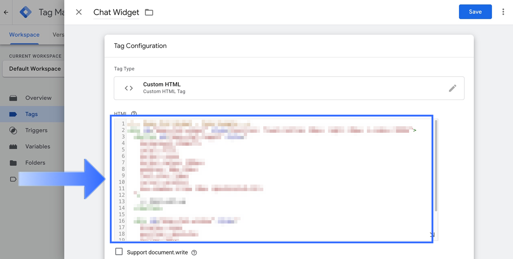 Chọn HTML Tùy chỉnh (hoặc loại thẻ phù hợp khác) làm loại thẻ.