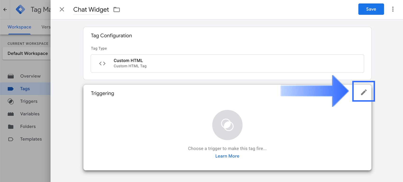 Đặt cho thẻ một tên mô tả và nhấp vào biểu tượng bút chì trong phần Cấu hình Thẻ.