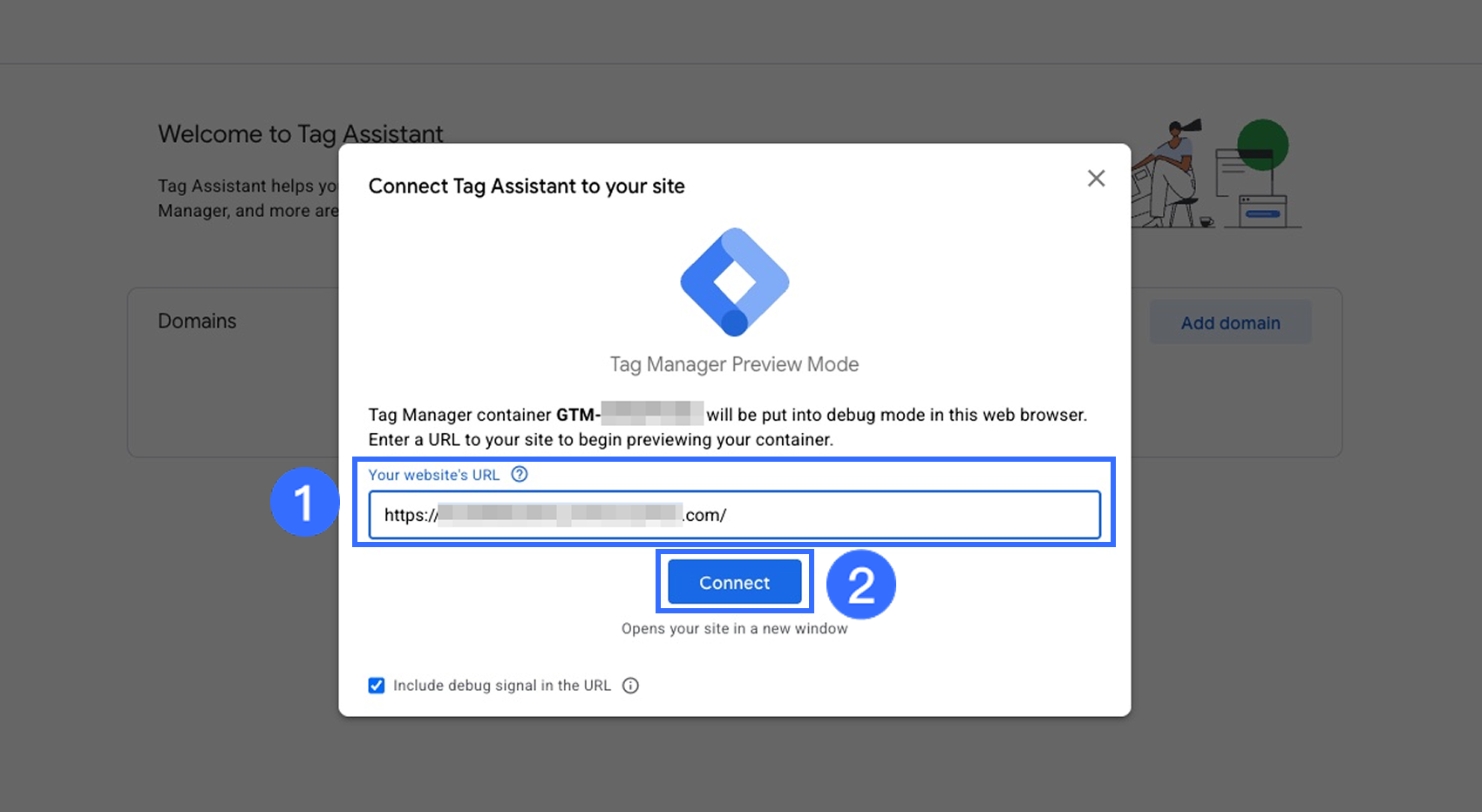 Trong cửa sổ bật lên, dán ID Container GTM của bạn, sau đó nhấp vào Hoàn tất.