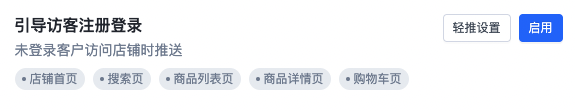 - 引导访客注册登录:每日访客第一次访问店铺、并且未登录时推送,客户点击后可以打开注册登录弹窗