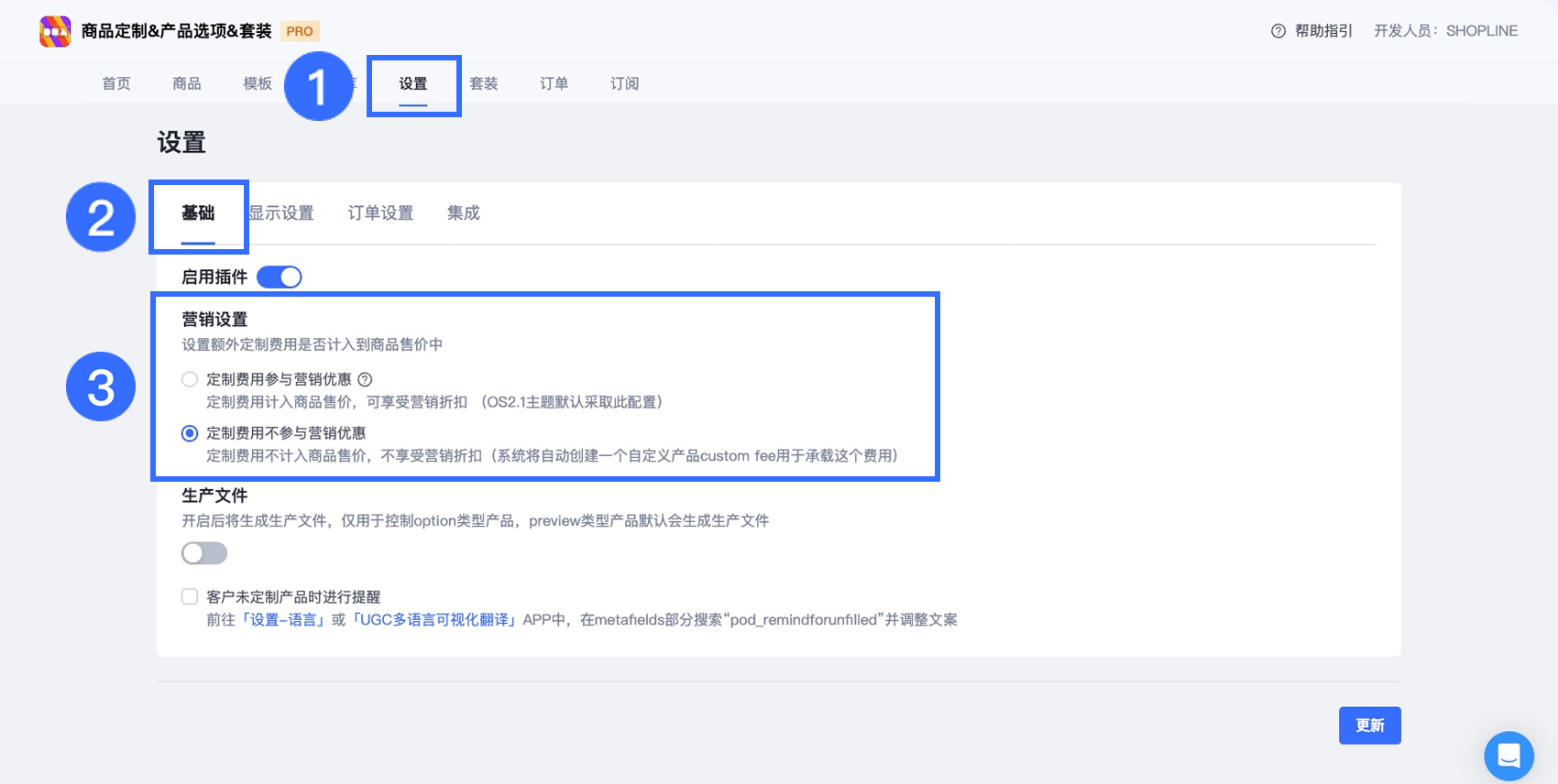 - 如果您的商店已选择【定制费用不参与营销优惠】,或您未为定制商品设置固定的市场价格,则不会出现此问题。