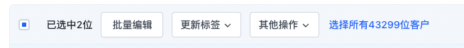 在客户管理页面,您可以使用批量编辑来同时编辑多个客户的信息。您可以通过以下方式选择店铺内多个或全部客户资料: