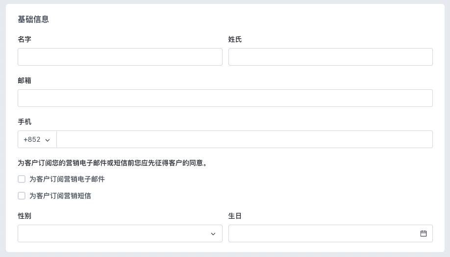 - 若要为客户【订阅营销电子邮件】或【订阅营销短信】,请勾选对应选项。