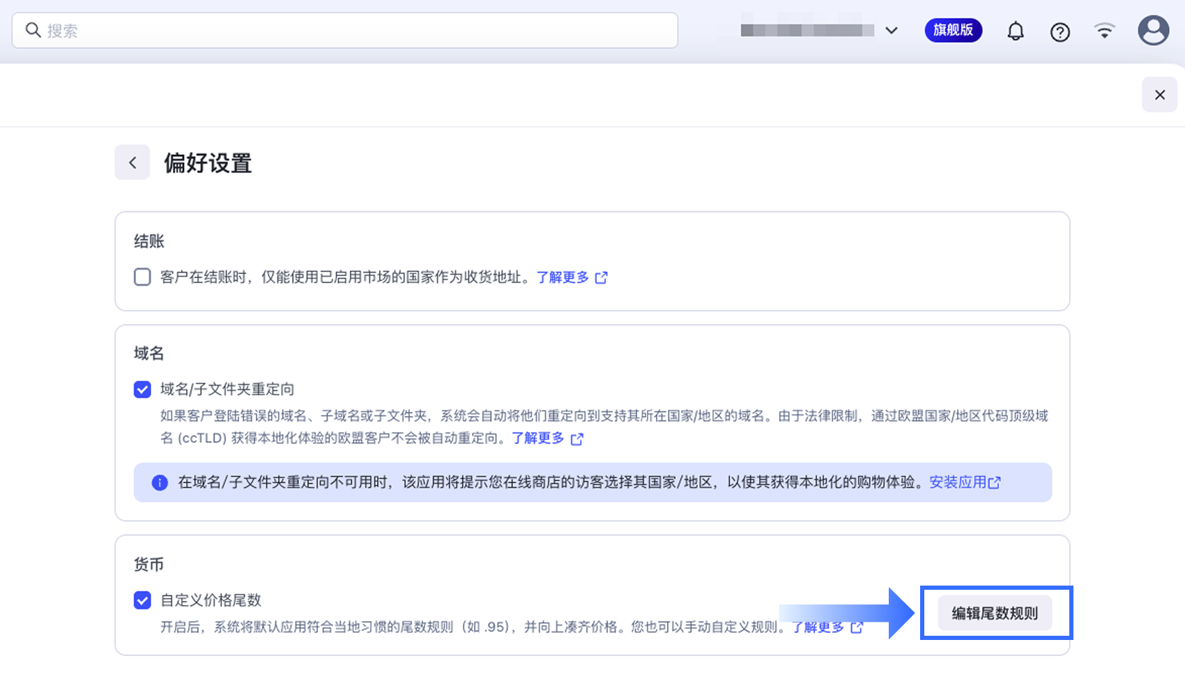 为了在货币换算后保持一致、稳定且符合当地习惯的价格尾数,请参考本指南了解如何设置自定义价格尾数规则。