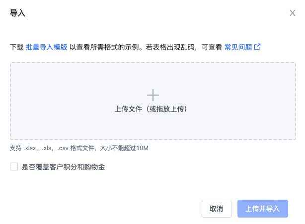 - 如果您希望客户的积分和购物金增加您导入的数字,请勿勾选【是否覆盖客户积分和购物金】