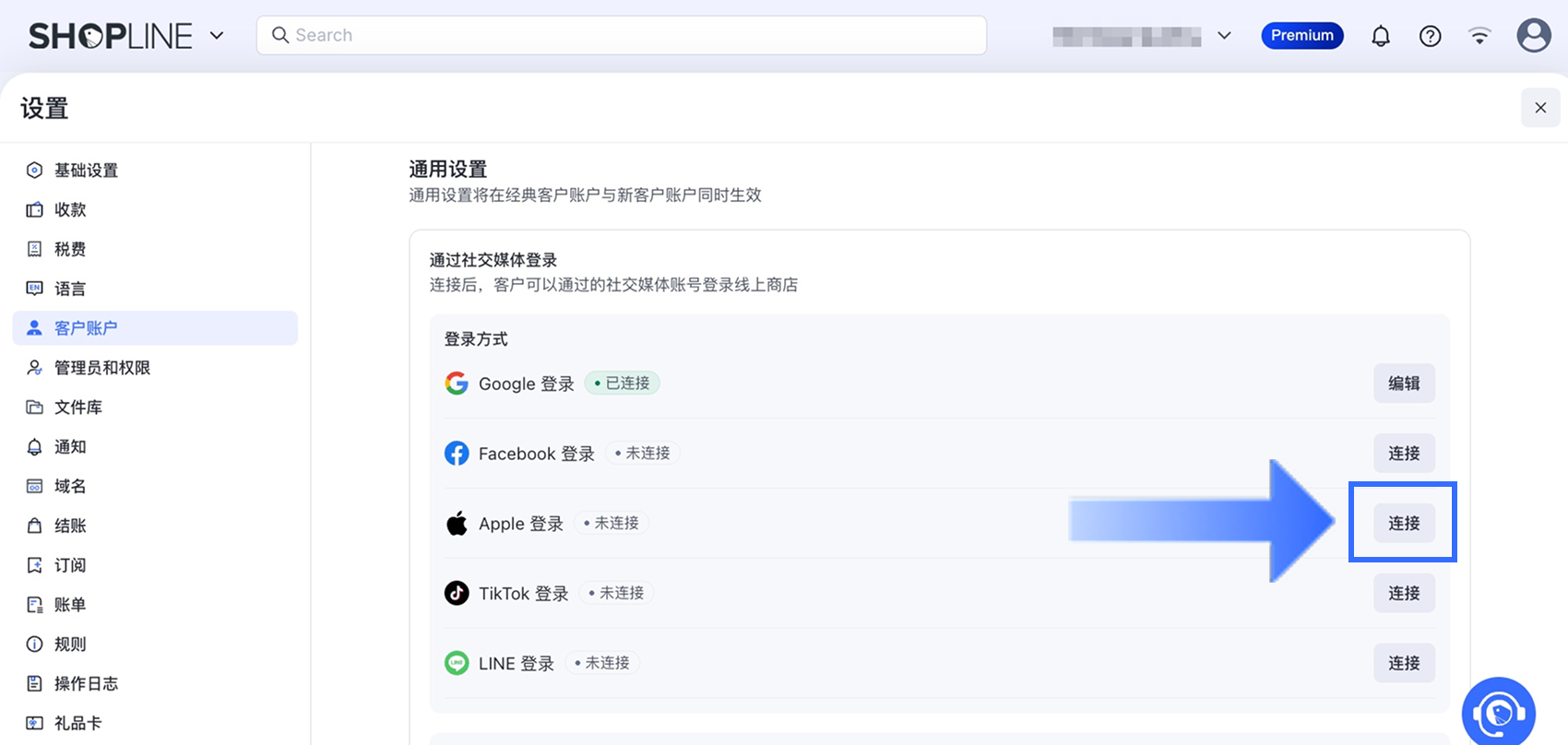 在 SHOPLINE 中启用 Apple 登录