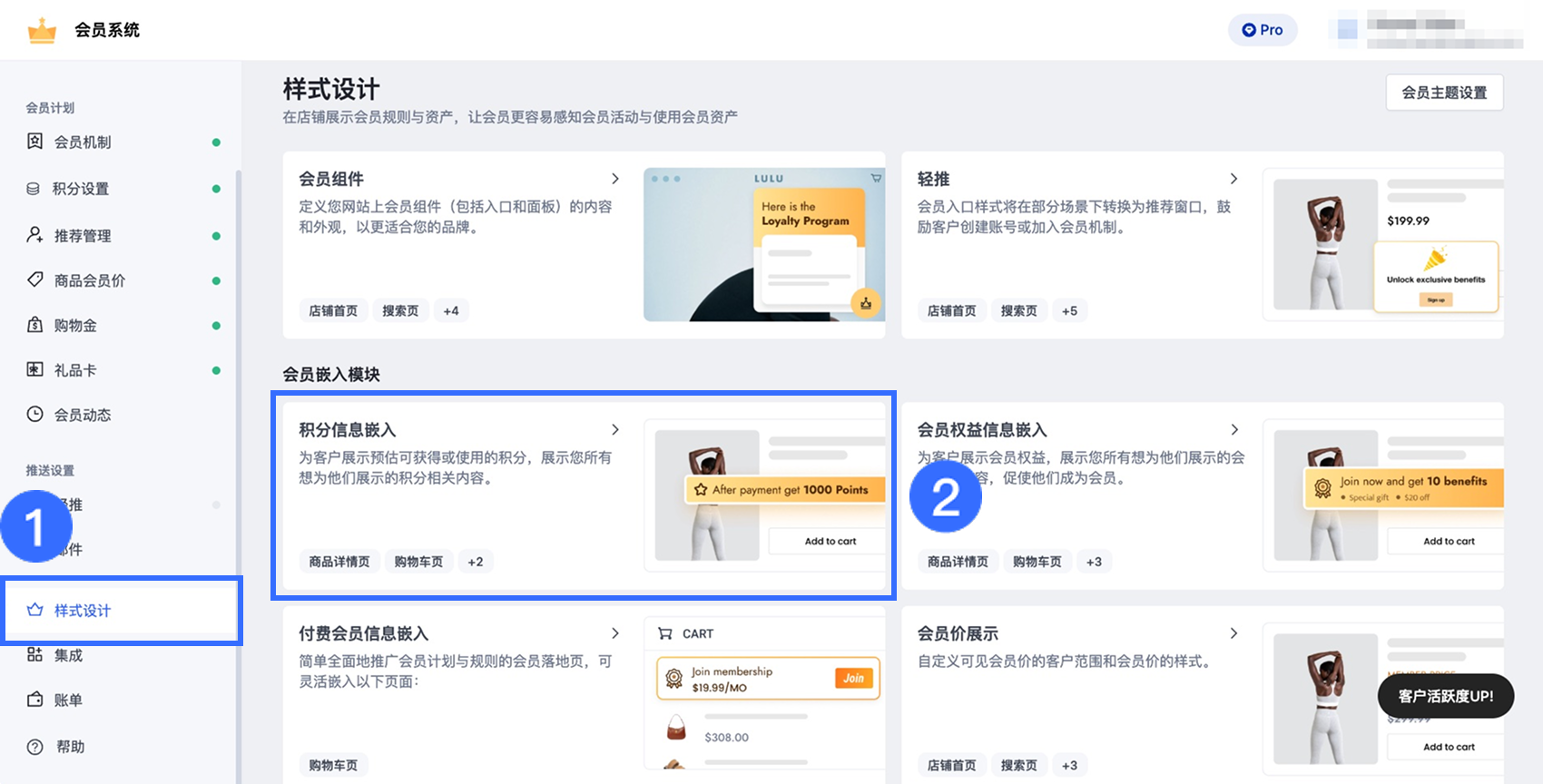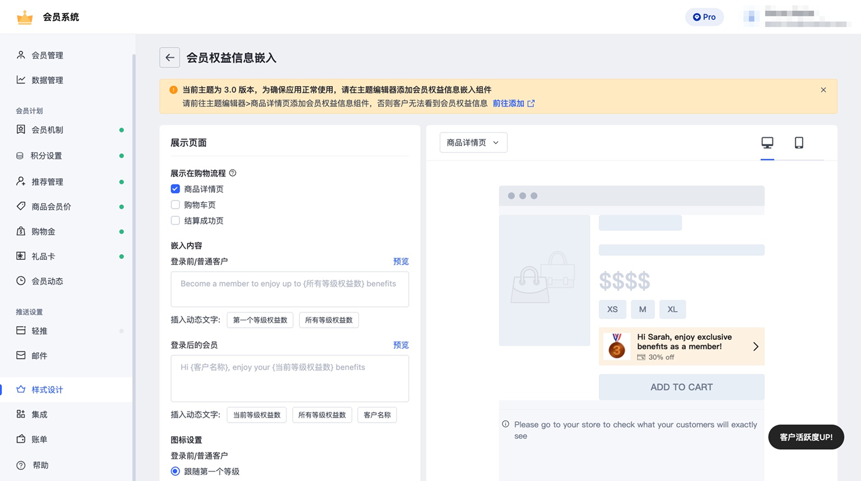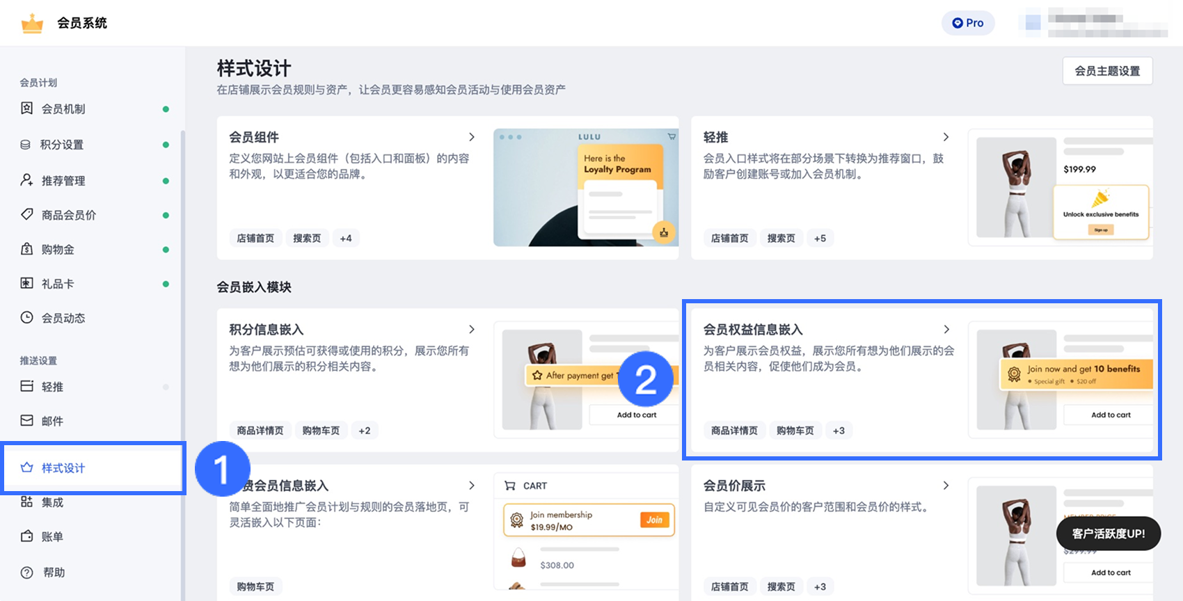 位置:从你的会员系统插件,前往【样式设计】>【会员权益信息嵌入】。