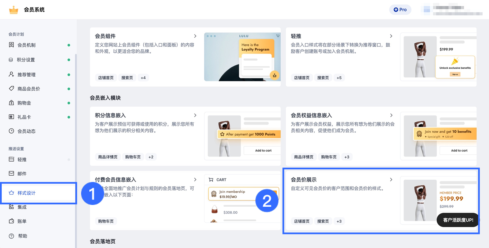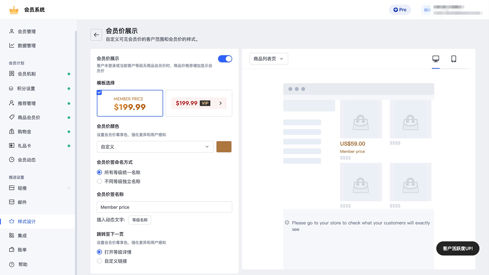 位置:从你的会员系统插件,前往【样式设计】>【会员价展示】。