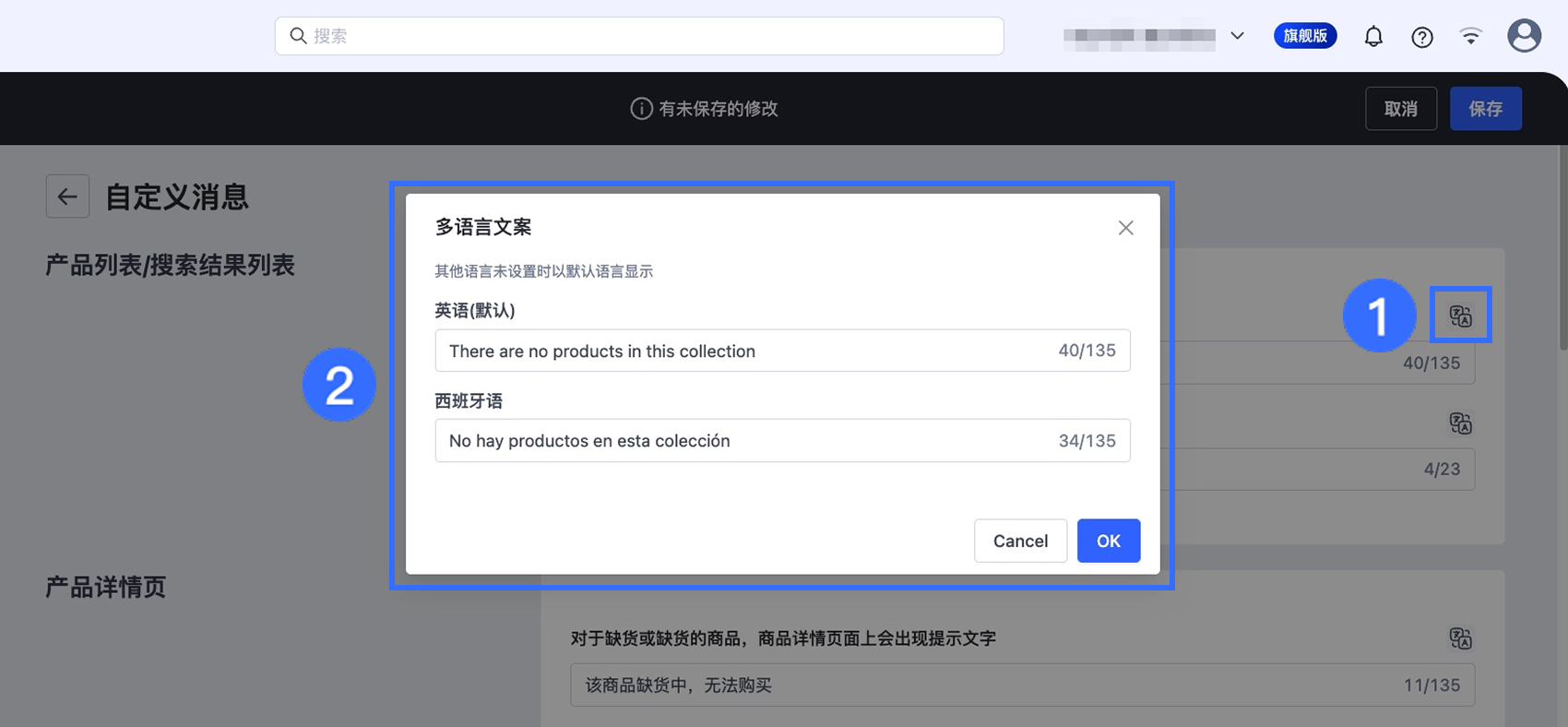通过自定义这些消息,您可以确保商店 App 的整体语调与品牌形象保持一致,并为顾客提供更加统一的使用体验。