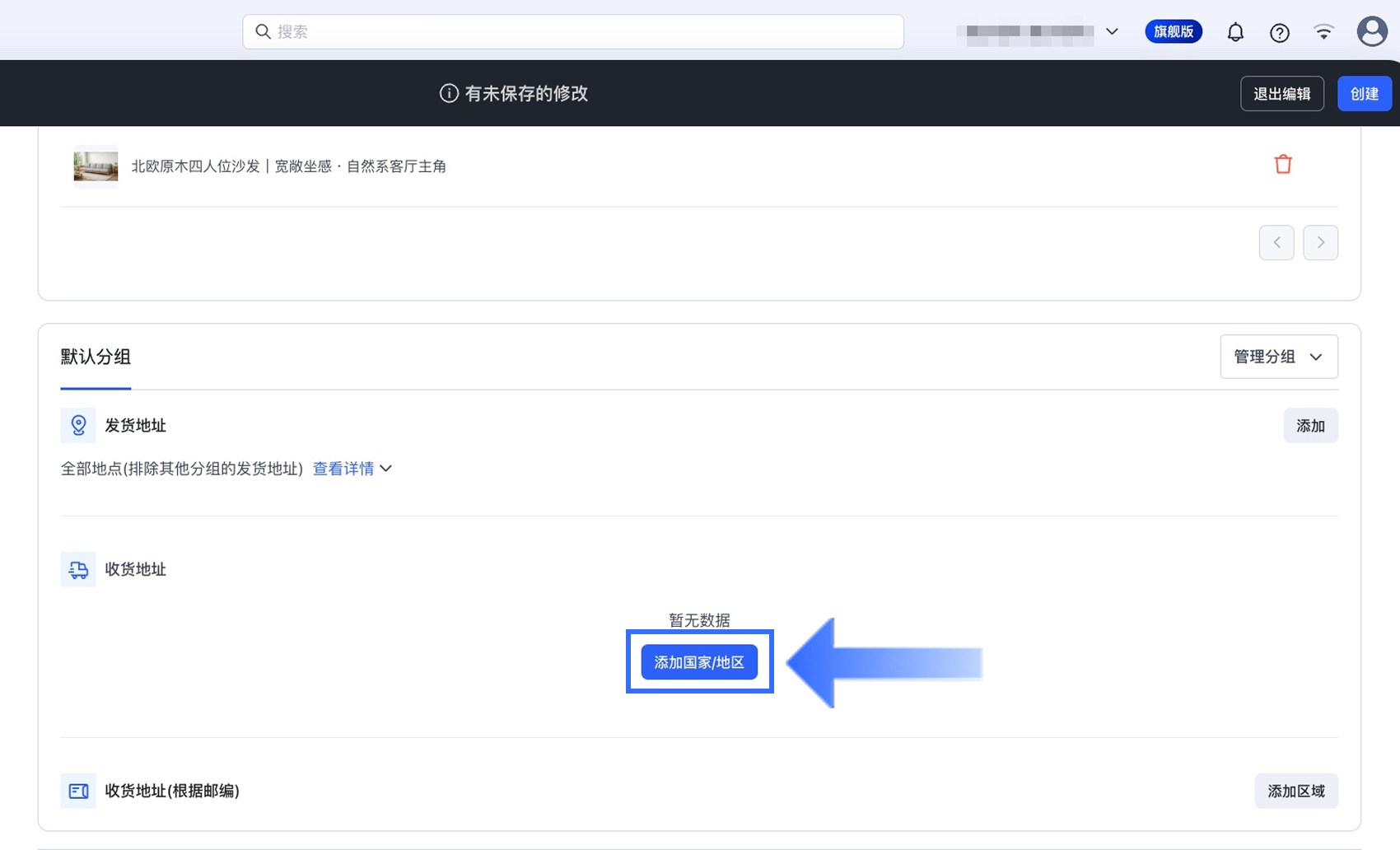 - 配置新加坡仓的运费方案:前往【设置】>【发货与配送】>【运费】,为新加坡仓配置运输方式与运费。