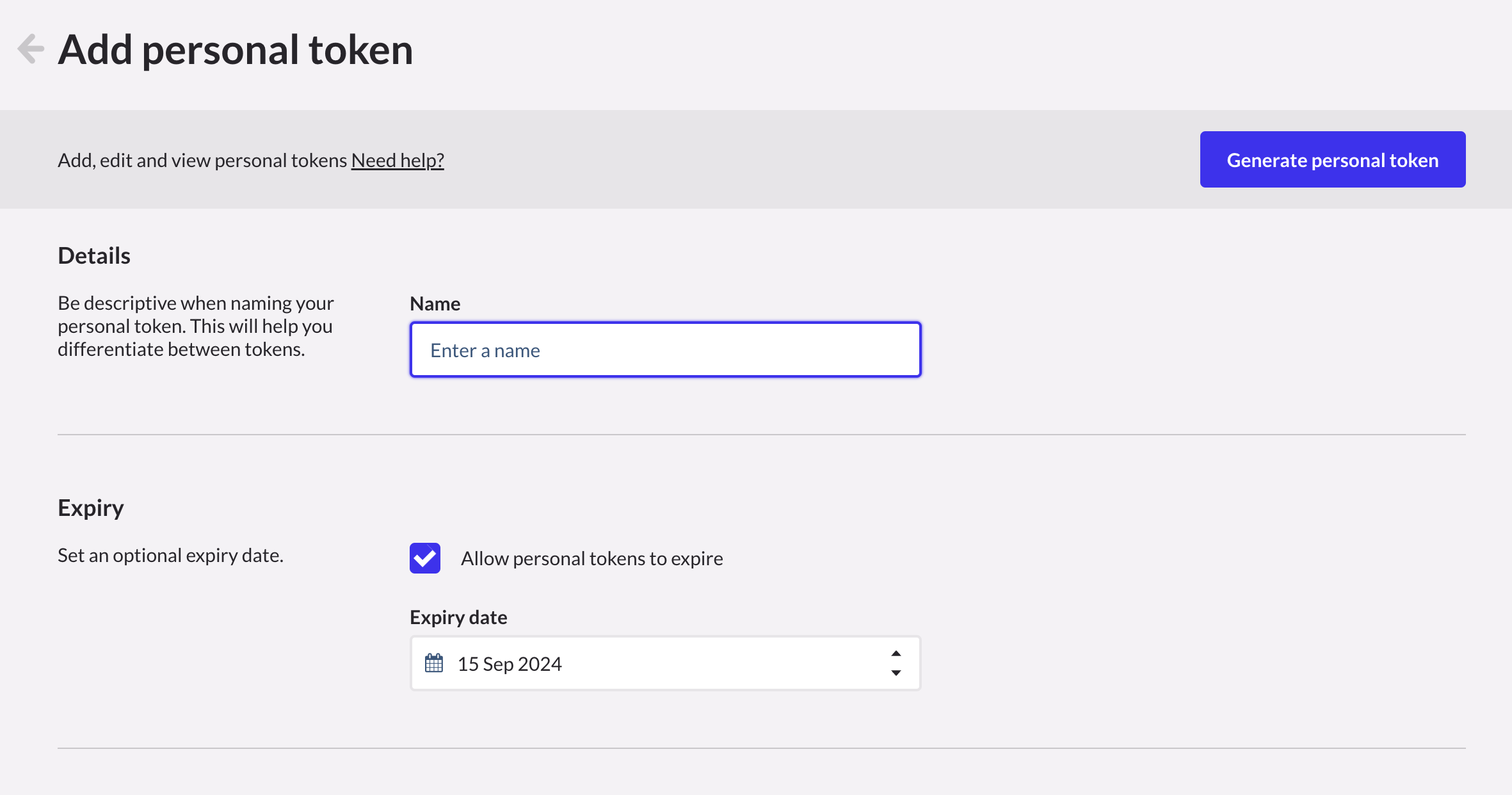 - API Token 获取:【Setting】>【Personal Token】>【Add personal token】,复制生成的 token。
