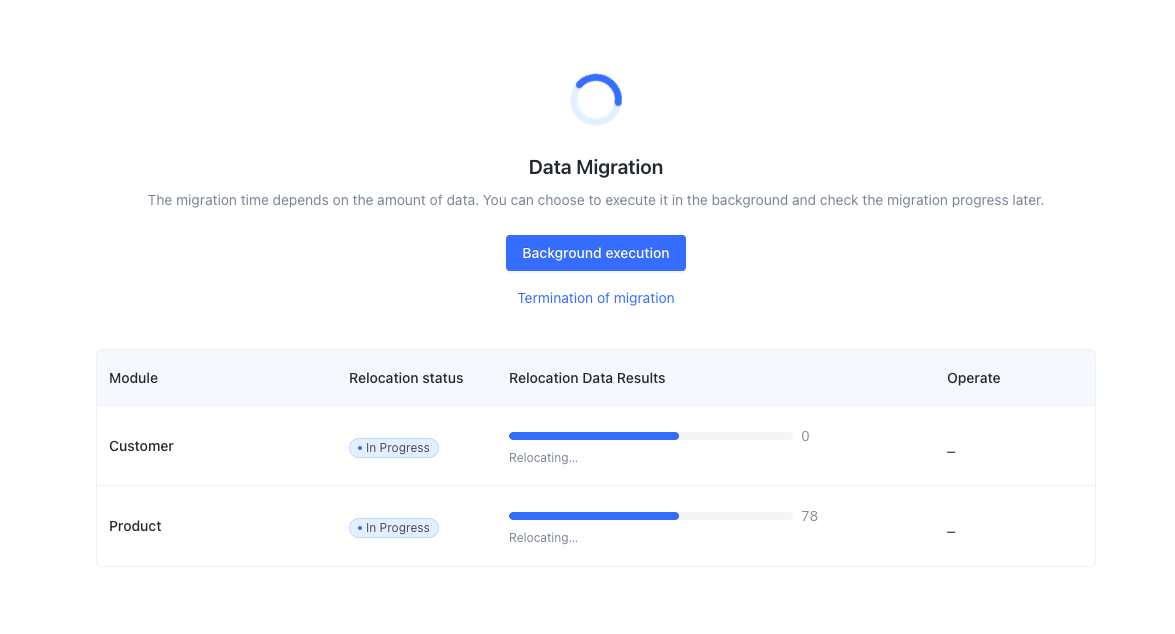 搬迁数据需要一定时间,请耐心等待,具体所需时间视店铺数据量不定。在搬迁结束后可进入应用查看搬迁结果。 - 完成数据搬迁。