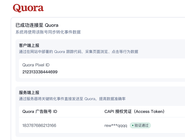 配置 Quora Conversion API(服务端追踪)