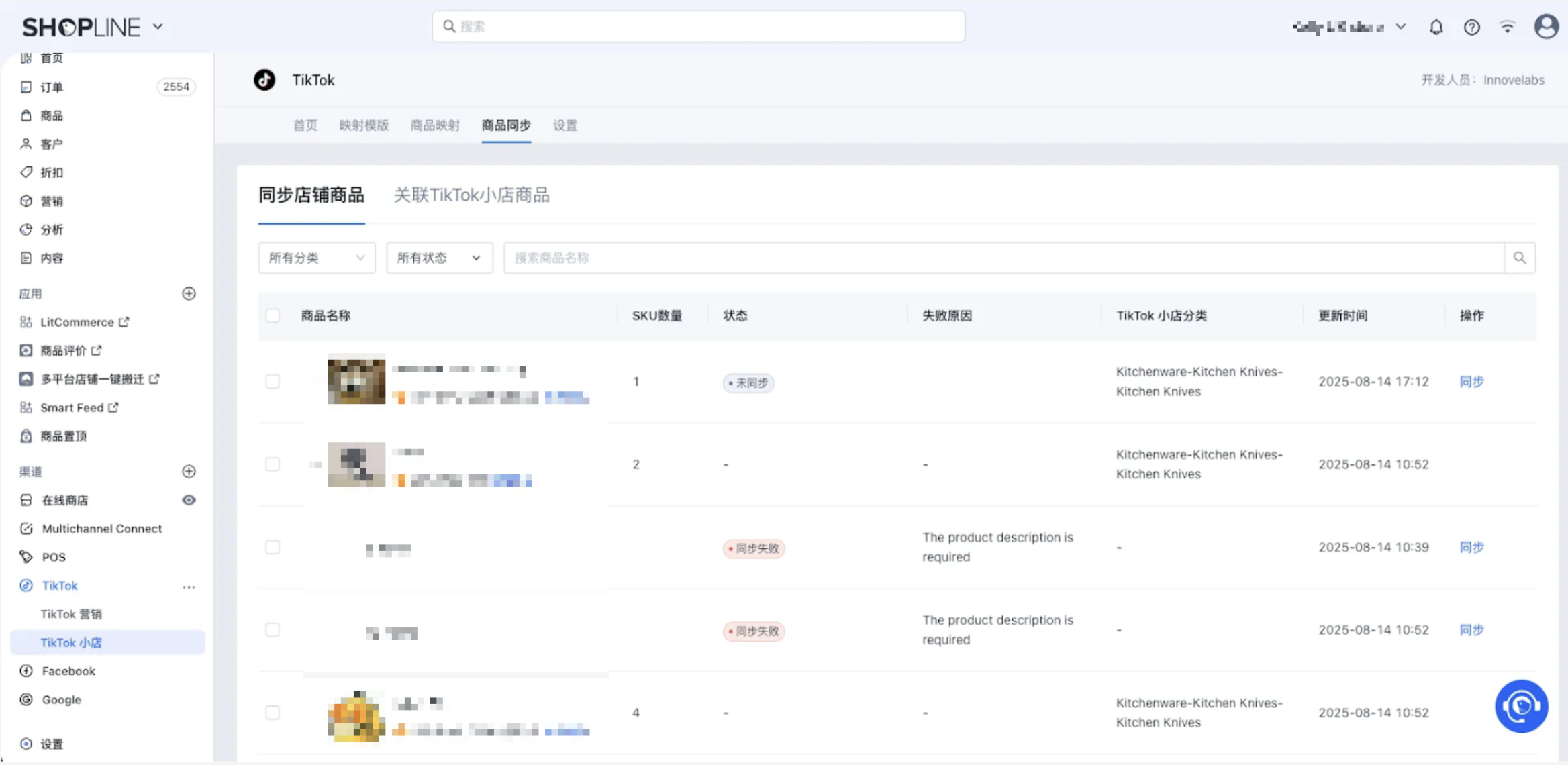 - SHOPLINE 和 TikTok 商品名称完全相同。