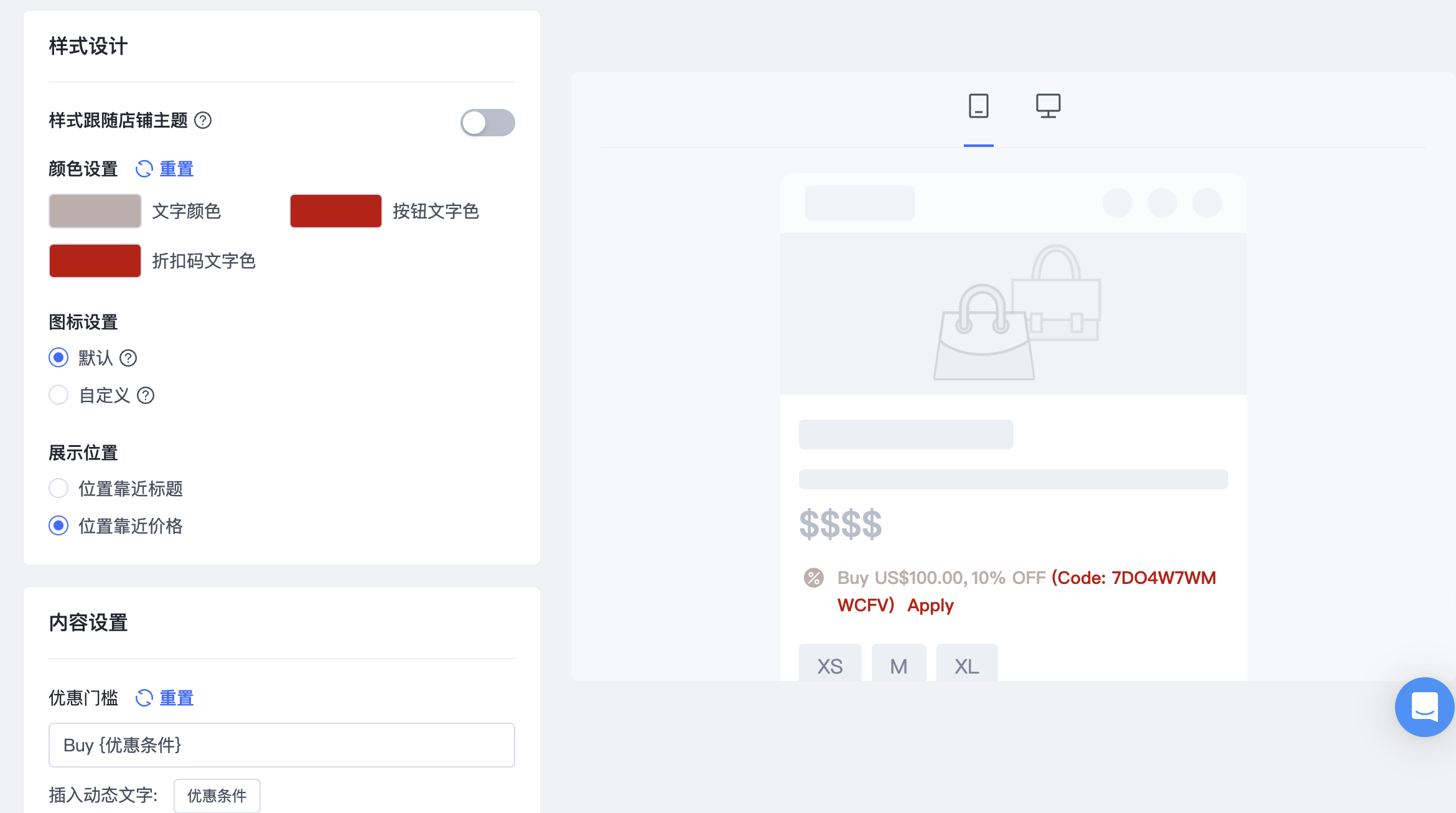 折扣码自定义样式 - 商品详情页展示设定