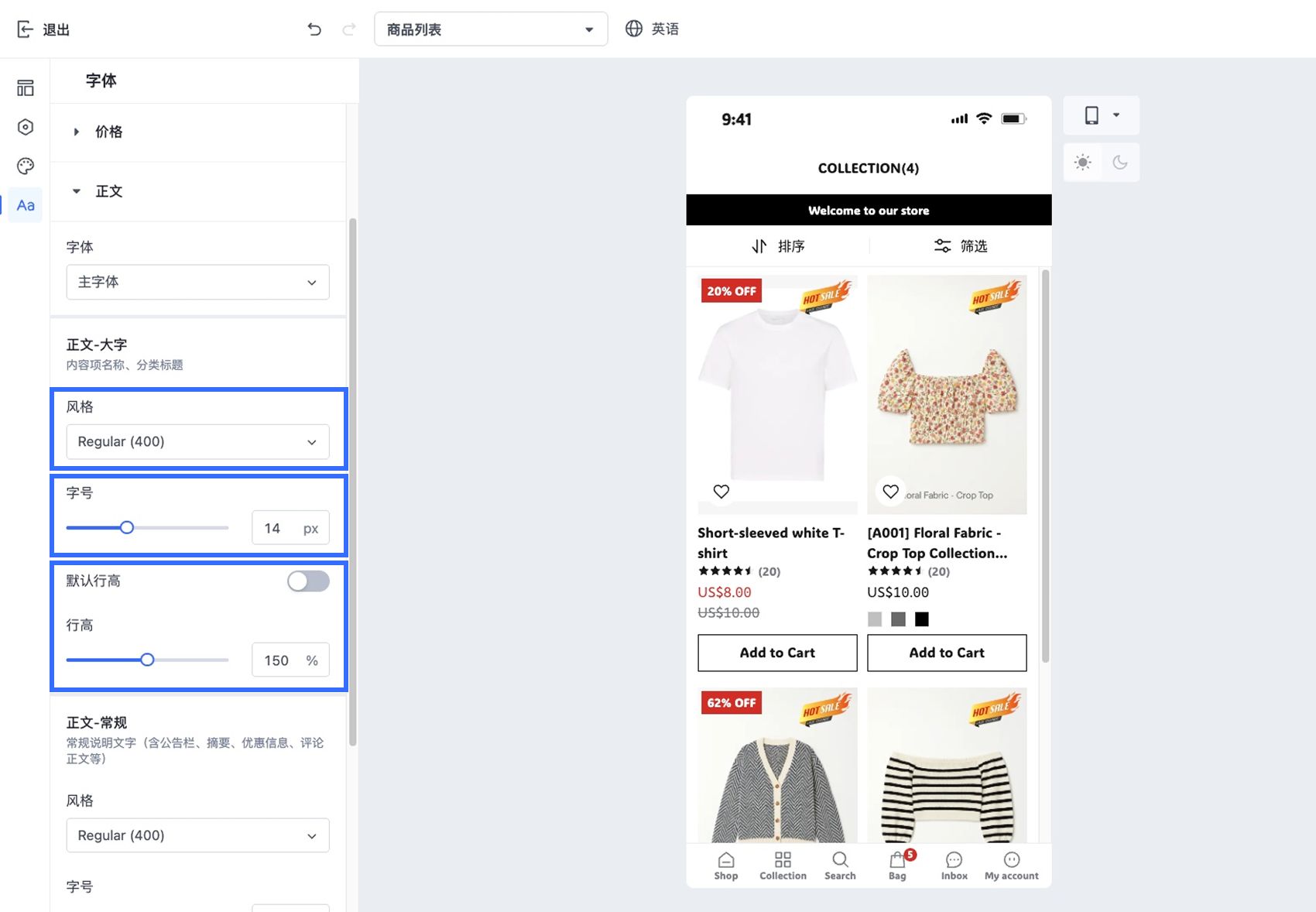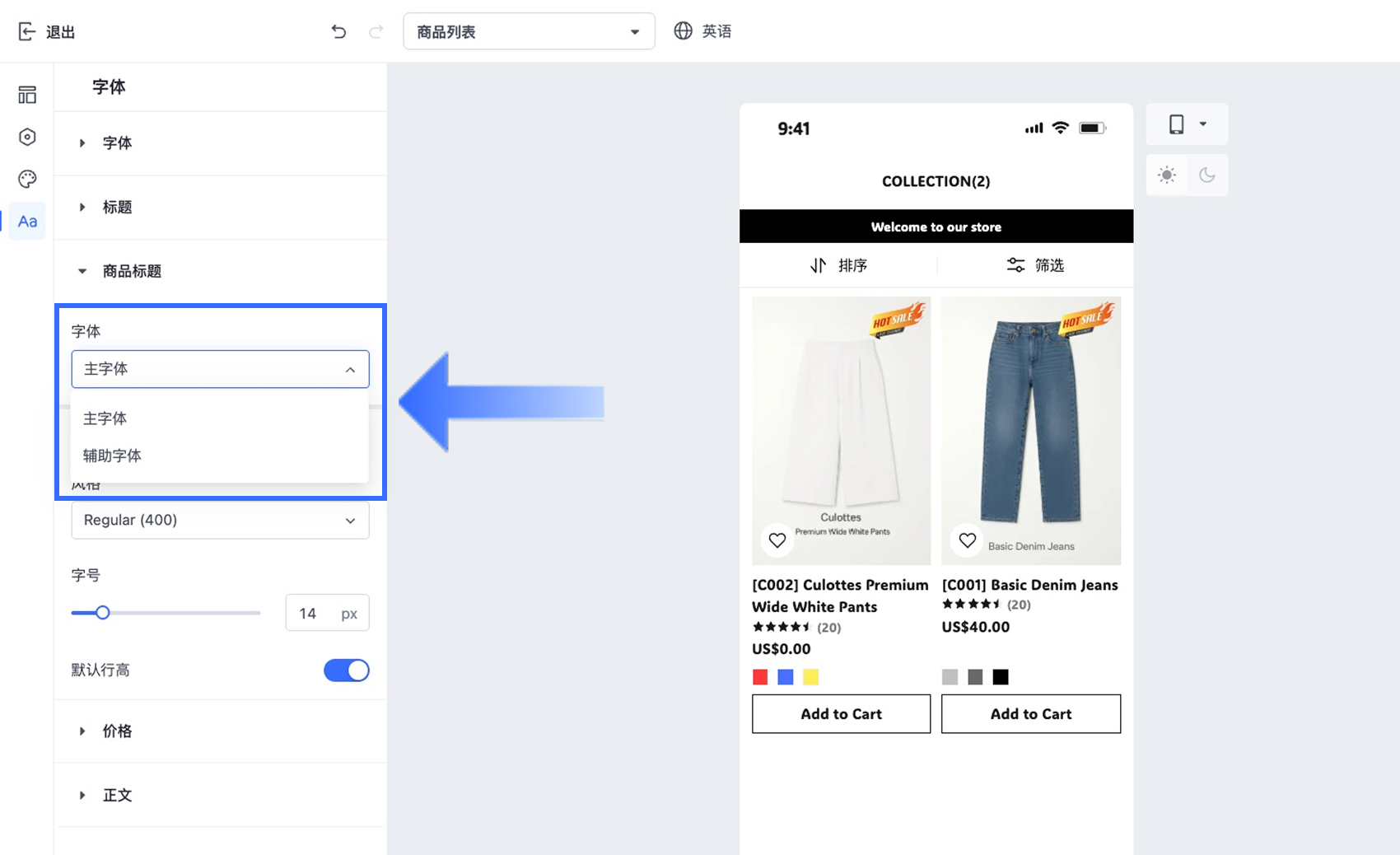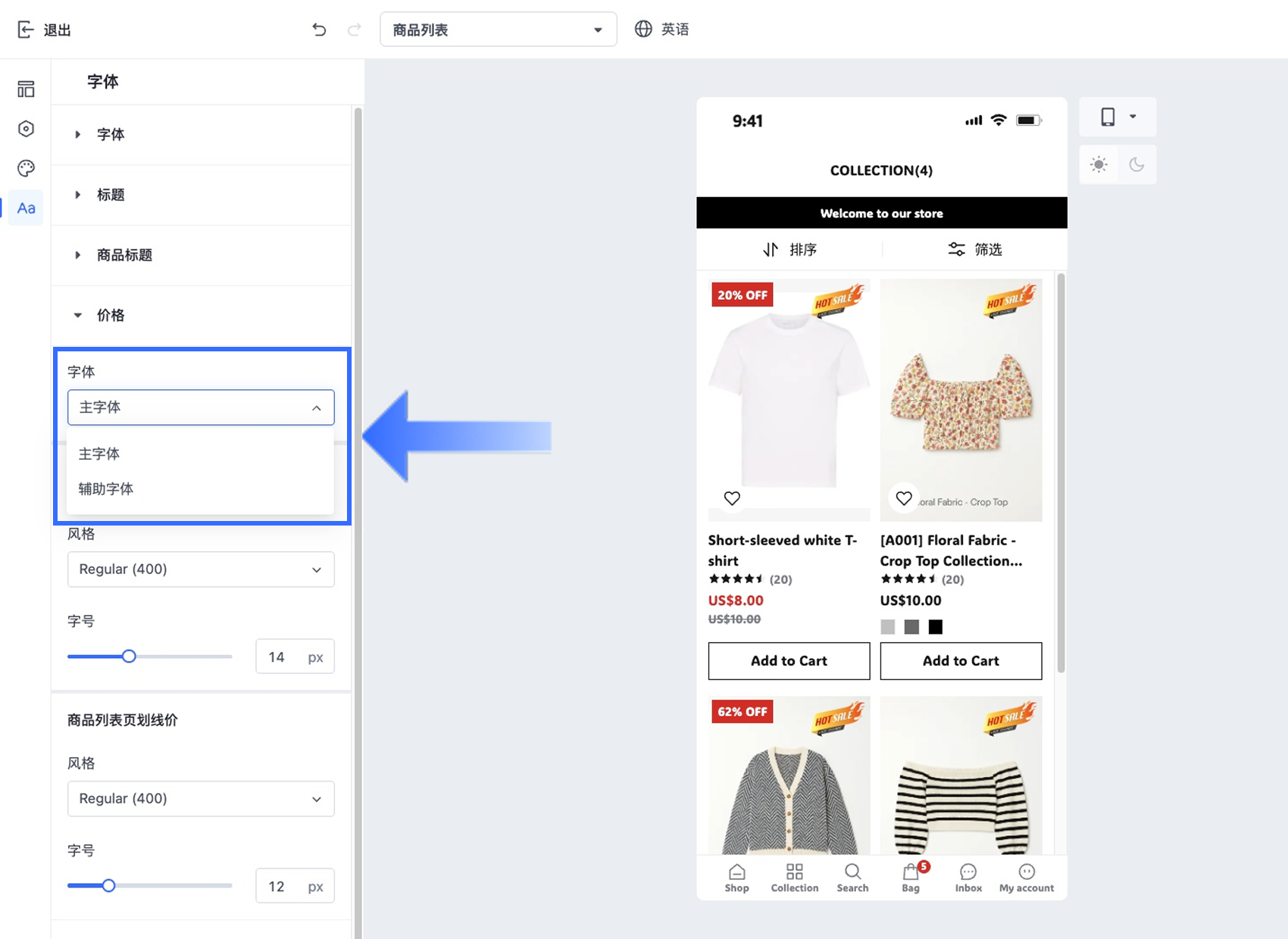 在 Shopper App 中自定义店铺字体
