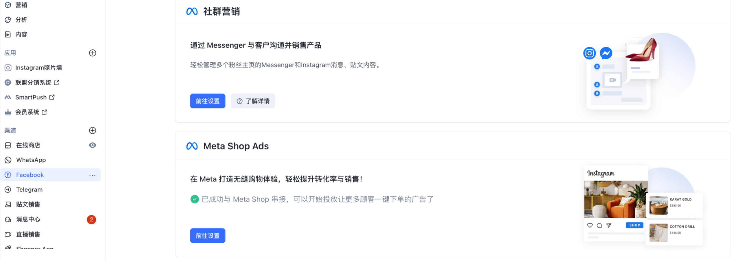 | 注意: 如需在您的店铺中启用 Meta Shop Ads,请联系 SHOPLINE 客服支持团队 协助开启。 |