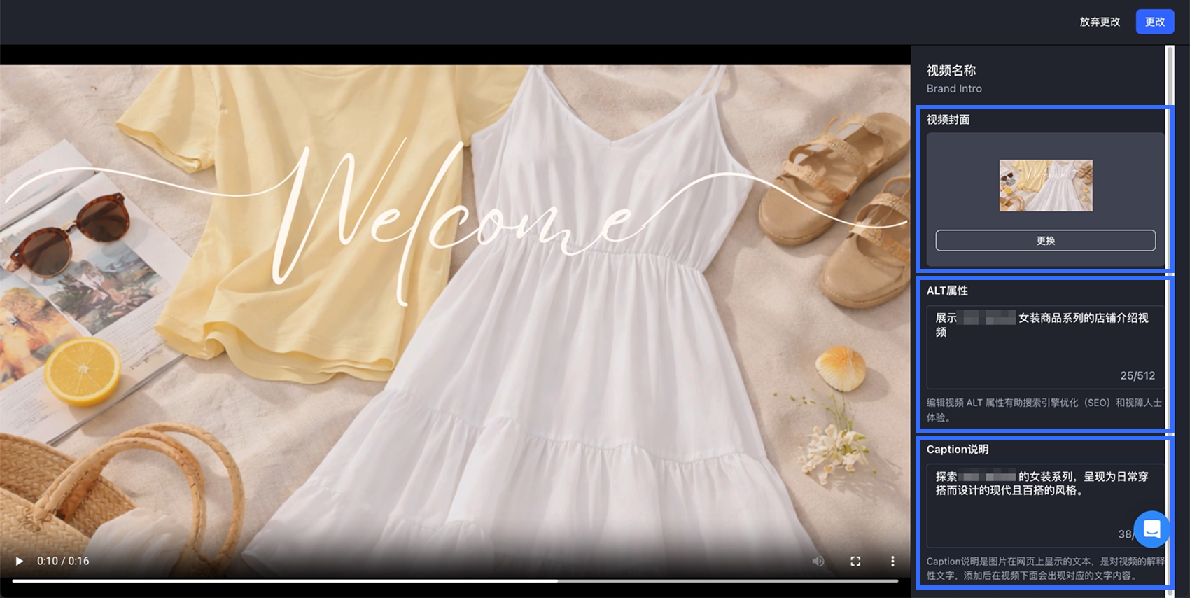 - 视频封面:点击【更换】以上传新的视频封面。