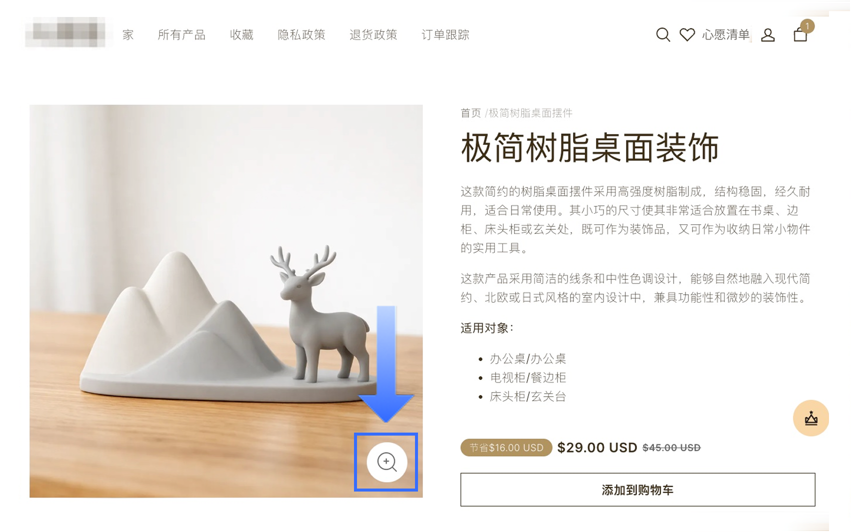 您现在可以在商品详情页自定义图片缩放体验,支持悬停放大、滚动缩放或箭头切换等多种【放大镜】样式。
