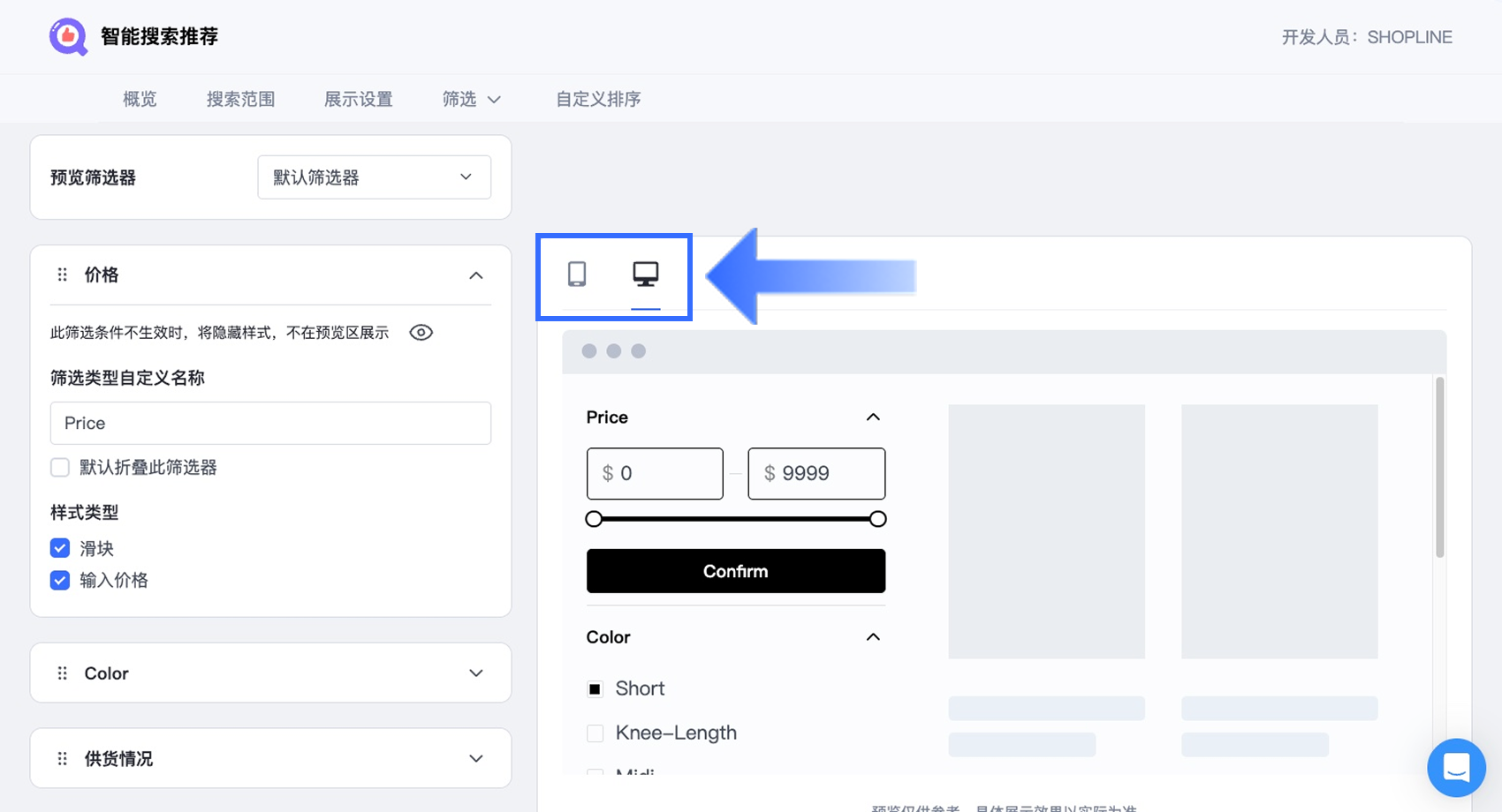 智能搜索推荐:配置筛选器展示设置