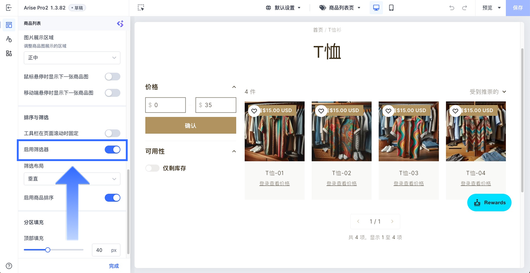 - 【样式类型(根据筛选类型不同)】:可选样式取决于筛选器类型,例如价格筛选器可选择滑块或输入框等形式。