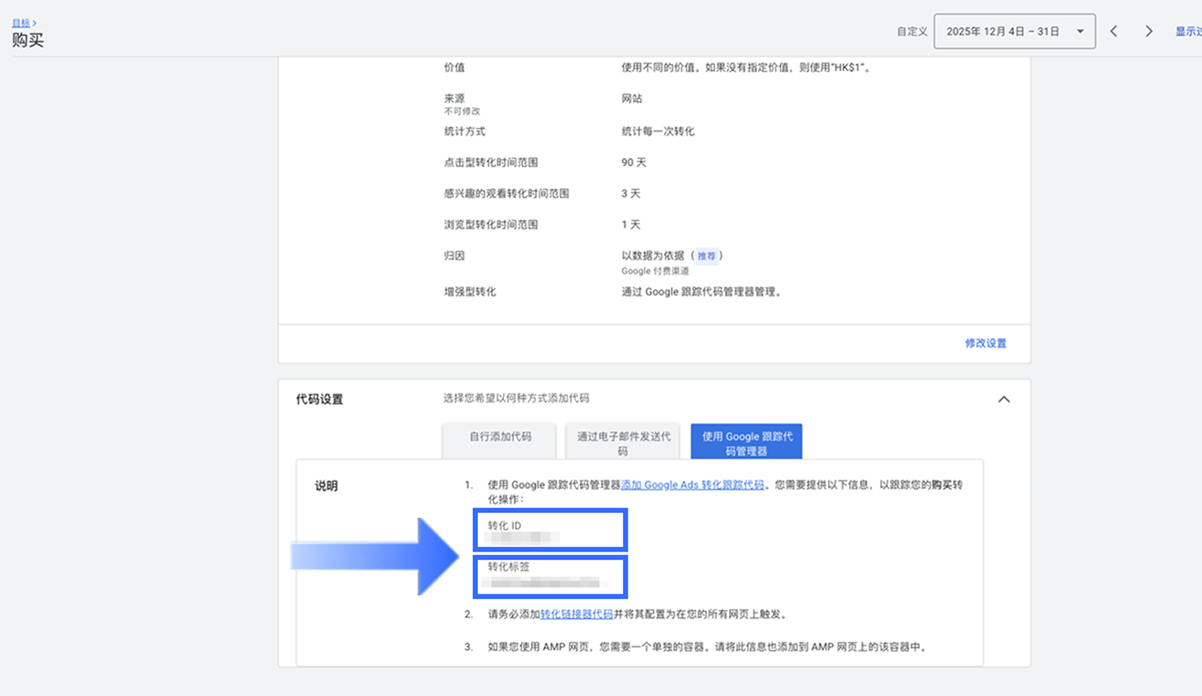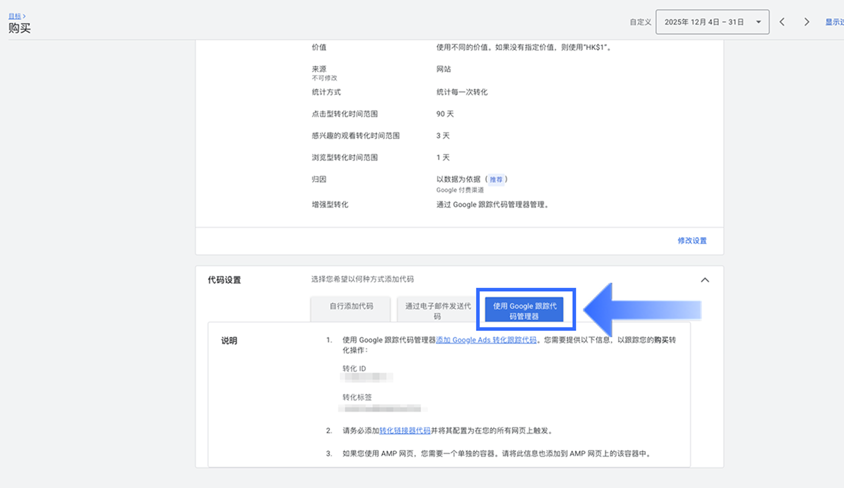 - 将 【转化 ID】粘贴至【转化 ID】字段。