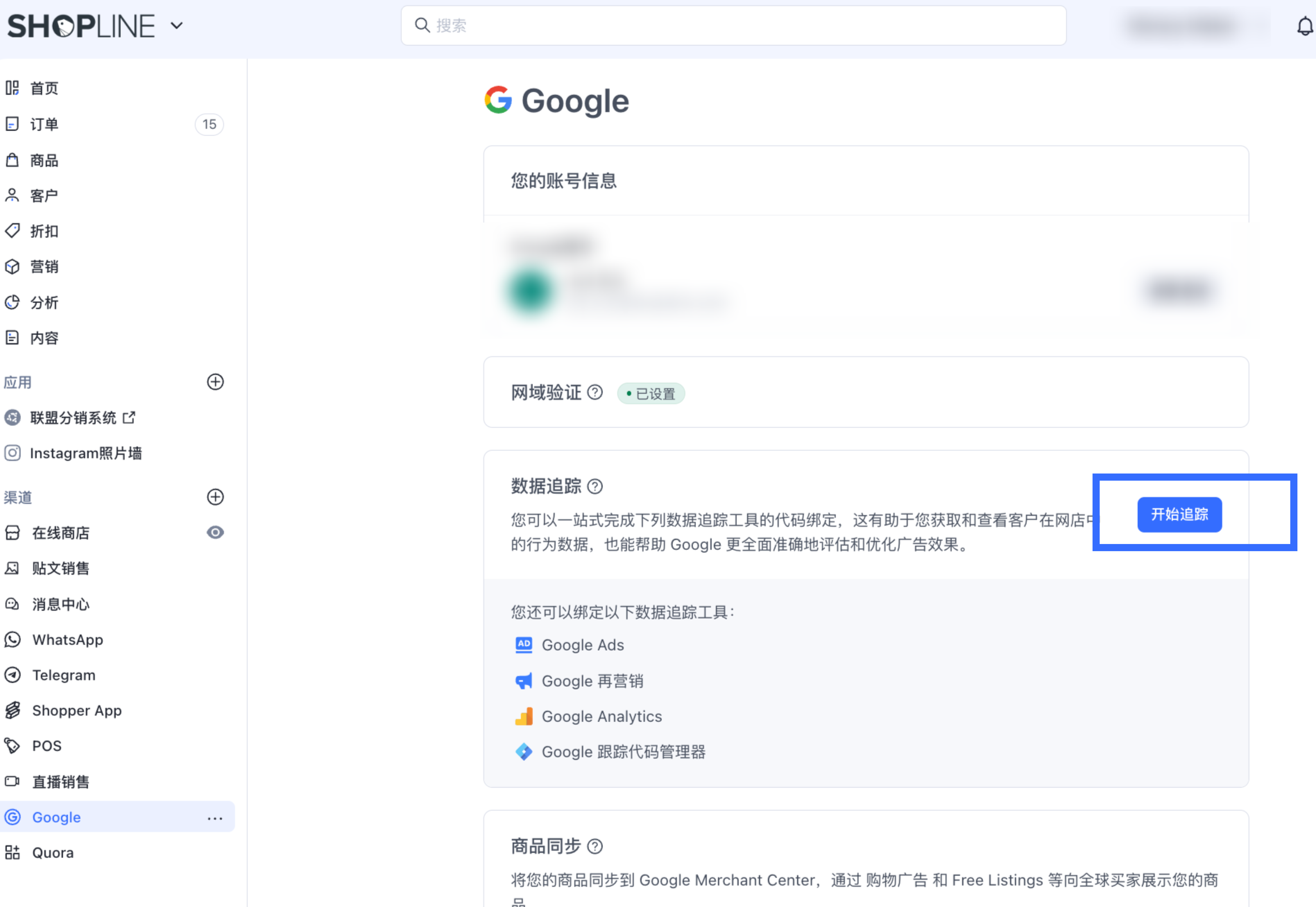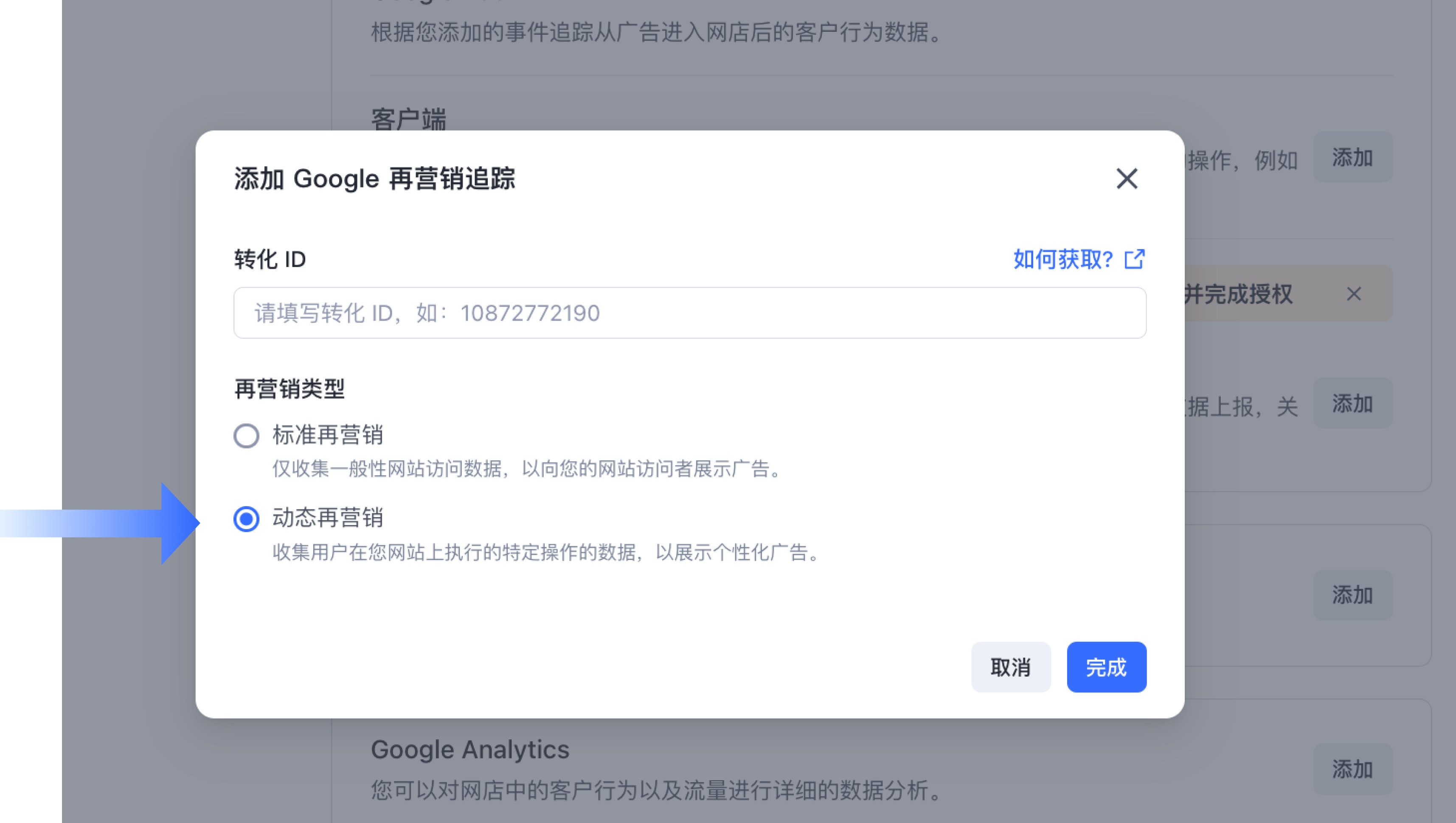 将 Google Ads 再营销代码与 SHOPLINE 绑定