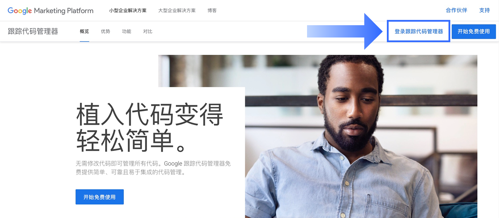 前往 Google Tag Manager,并使用您的 Google 账号登录。