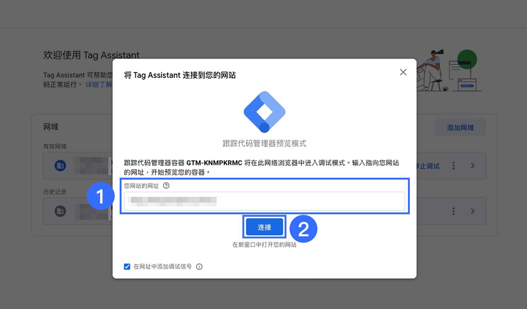 在弹出窗口中粘贴您的 GTM【容器 ID】,然后点击【完成】。
